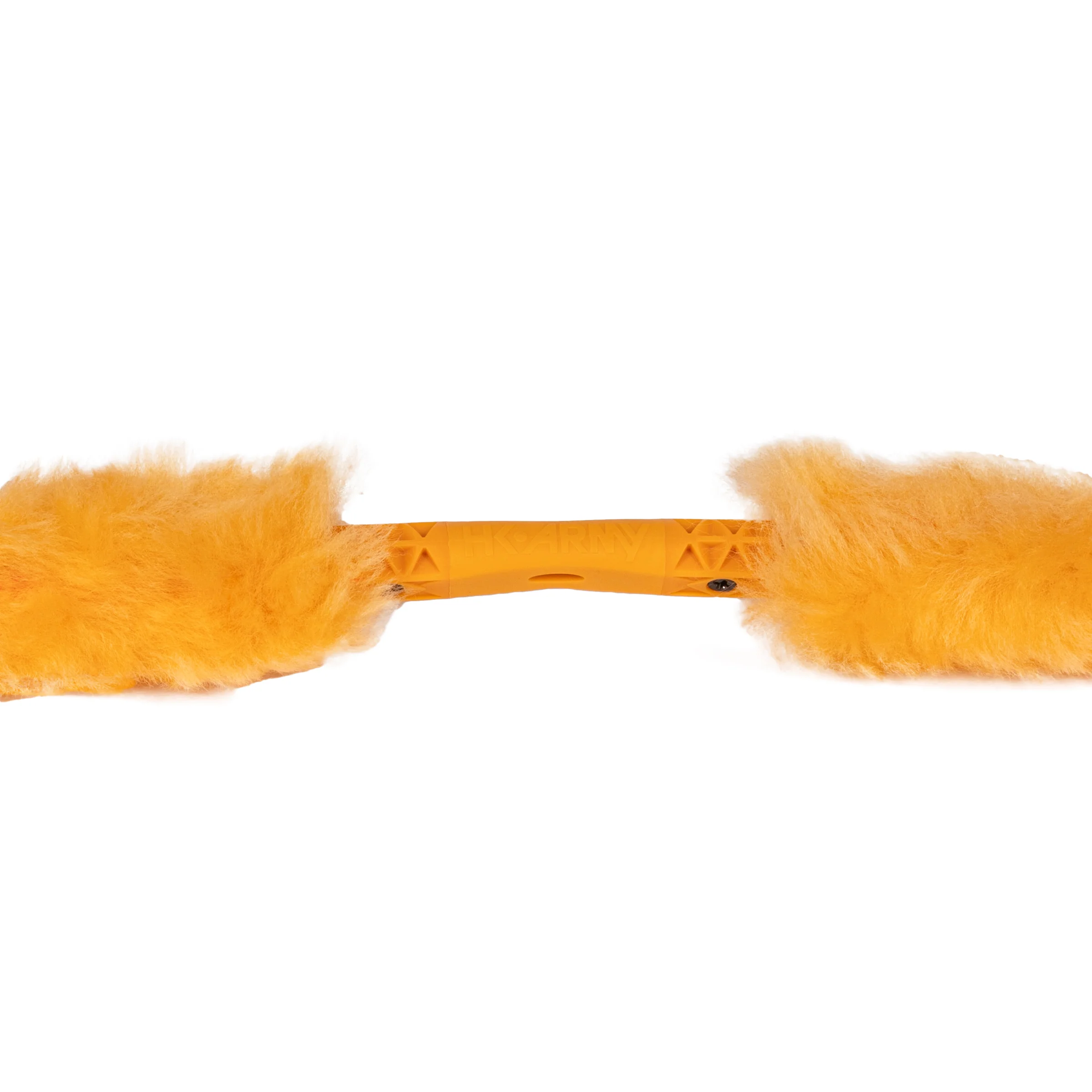 - Two sided absorbent fuzzy material that cleans and polishes while being inserted and pilled through the barrel.